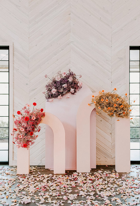 A modern take on your classic Art Deco. Or! Take off the added wooden shapes and class it up with neutral colors, the choice is yours. Trending like crazy and perfect for your next shindig as an instagrammable photo backdrop.
